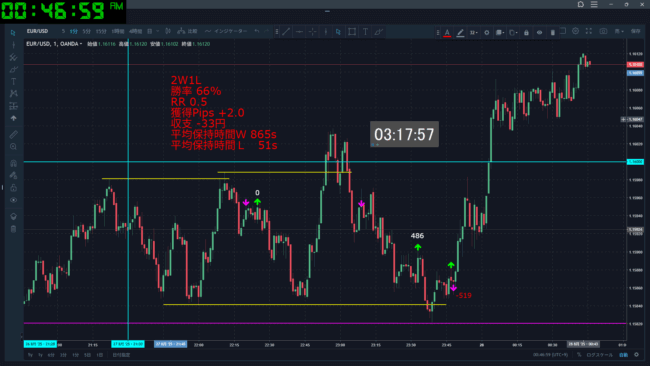 この日は昨日とは逆で損切りしなければ、利益になってたトレードが2/3回もあった。損切りの位置はエントリー前に決めている。もっと言えば損切り幅に合わせてロット数を決めているため、損切り位置が決まってないトレードは存在しない。