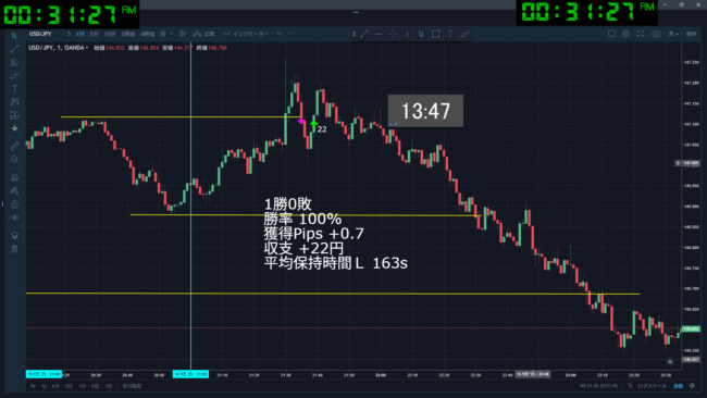 結論、このトレードスタイルに期待値はあると考えている。もう少しこのトレードを続けてデータを取りたい。そのために必要なのはブレずに同じトレードを続ける事だ。明日もやるんだ、同じトレードを。