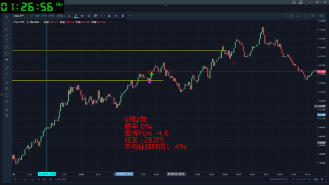 この日は2回とも負けトレードとなった。私のロスカットしたポイントが絶好の順張りエントリーポイントとなっていると感じた。