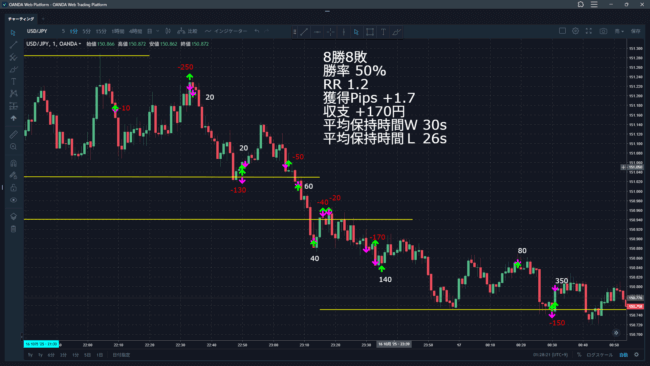 この日はNY時間のだけで16回もトレードしてしまった。そして最後のトレードで大きく取れたからギリギリプラスになった危なっかしい1日だった。