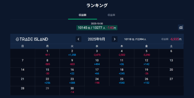 9/8以降のトレード成績