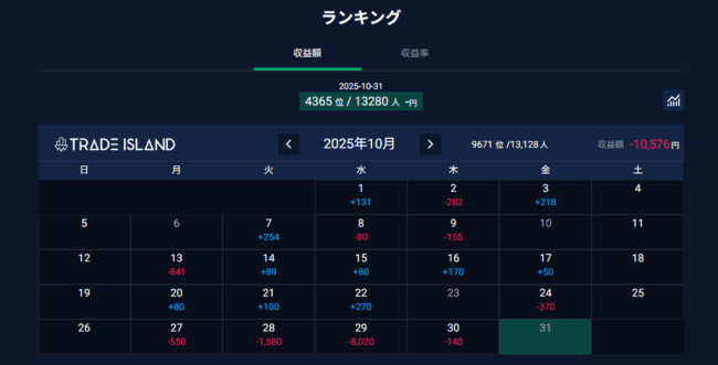 10/27.28.29と暴走。特に10/29はFOMC含む64回のトレードで-¥8,020の大暴走。今月もやってしまった。そしてもはや恒例となった暴走後は反省してトレードを厳選し10/30は3回、10/31はノートレードとなった。最初から厳選しておけよ!調子に乗るな!!