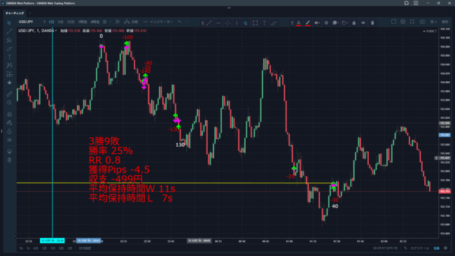 トレード履歴を見直しても、トレードしている位置が悪いとは思えないけど、これだけ成績が悪のであれば何がおかしいと言わざるを得ない。