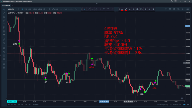 この日の平均保持時間Wは約2分。長いポジションは5分ほどあった。これは歪みを狙ったトレードなのか?きっと違う