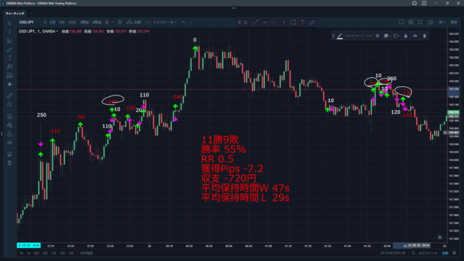 上昇トレンド(もしくは上昇中のレンジ)の高値超えを狙って負けまくってるのであれば、一旦それはやめて、得意なとこ(今までやってて完食の良かったところ)だけやるべきだと強く思った。